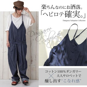 『デニムサロペット』[レディース サロペット オールインワン ノースリーブ ボトムス パンツ ダンガリー デニム ロールアップ 綿100% コットン100%]【メール便不可】